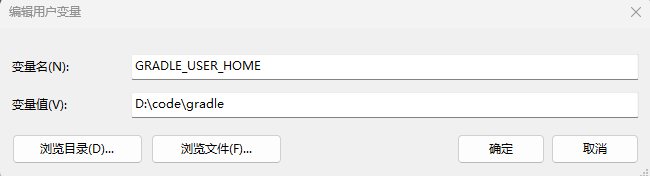 为了解决这个问题,就需要设置windows系统环境变量。只要将环境变量GRADLE_USER_HOME设置为你想要的gradle缓存目录,以后再新建项目gradle的缓存目录就不会再自动变成C盘。